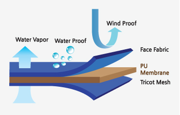 - With numerous fine pores, it emits inside vapors while protecting from rain and wind. Air and moisture permeability are excellent.