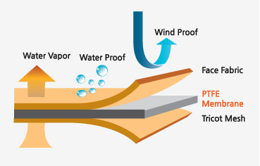 - Non-porous type membrane with stretch provides the fabric a better comfort in any extreme weathers.
